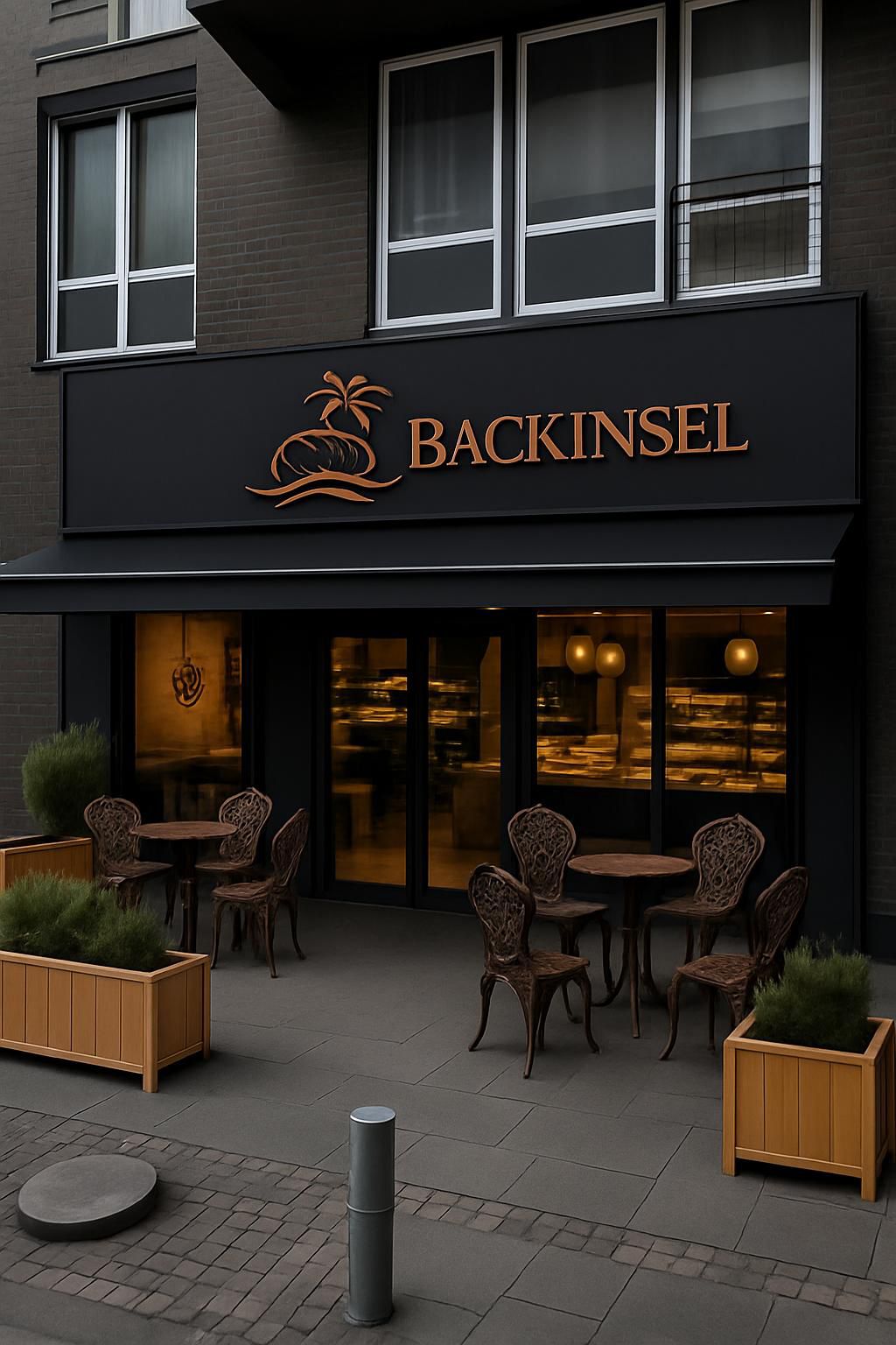 Premium Interior: dunkles Metall, Holz und warmes Licht – perfekt für Coffee & Pastry.